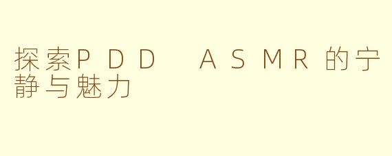 近年来,ASMR(自发性知觉经络反应)在网络上迅速走红,而PDD(拼多多)作为一个热门的电商平台,也利用这一潮流,推出了一系列与ASMR相关的内容。PDD ASMR不仅仅是单纯的舒缓声音,更是通过精心设计的场景和富有创意的表现手法,营造出一种放松心情的氛围。