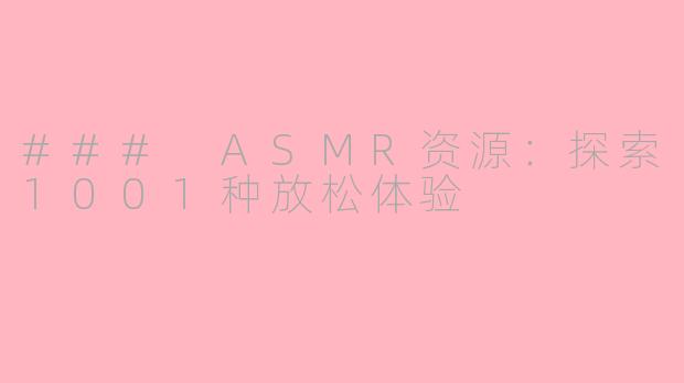 在这些丰富的资源中,"1001 ASMR资源" 提供了一个广泛的选择,从轻声耳语到柔和的背景音效,满足不同听众的偏好。无论是喜欢自然声音、角色扮演还是日常生活的细微声音,这里都有适合你的内容。