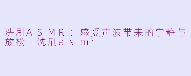 在现代快节奏的生活中,人们常常感到压力山大,因此找到放松身心的方法变得尤为重要。洗刷ASMR(自发性知觉经络反应)便是近年来备受欢迎的一种放松方式。它通过细腻的声音和视觉刺激,让人们在听觉上获得愉悦体验,从而实现深度放松。