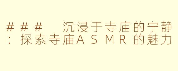 在快节奏的现代生活中,许多人都在寻找一种方法来放松身心,而“寺庙ASMR”正是一个极具吸引力的选择。寺庙通常是静谧和冥想的场所,寺庙ASMR通过录制佛教仪式、自然环境和宁静氛围,为听众营造出一种身临其境的感受。