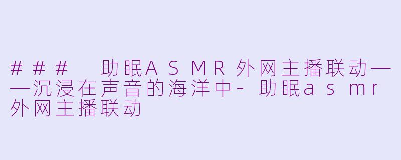 在快节奏的现代生活中,许多人都受到压力和焦虑的困扰,导致失眠问题日益严重。而ASMR(自发性知觉经络反应)作为一种新的助眠方式,近年来越来越受到关注。借助外网主播的联动,ASMR的魅力得以进一步扩展。