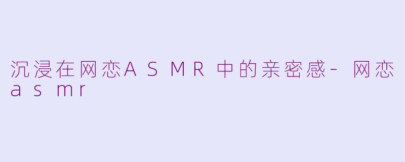 在这个数字化时代,随着社交网络的普及,越来越多的人选择通过网络交流来寻找爱与温暖。而“网恋ASMR”正是在这种背景下应运而生的一种新兴现象。ASMR,即自发性知觉经络反应,能够通过声音刺激带给听众一种轻松愉悦的体验。