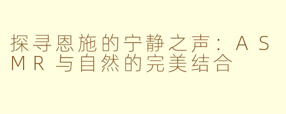 在中国西南部,恩施以其壮丽的山川和独特的民族文化而闻名。而近年来,随着ASMR(自发性知觉经络反应)的兴起,越来越多的人开始探索在恩施的宁静中感受这一独特的声音体验。