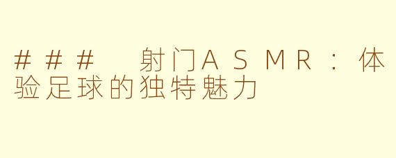 随着ASMR(自发性感知经络反应)在全球范围内的流行,越来越多的运动爱好者开始探索这一独特的声音体验,其中“射门ASMR”便是一个新兴的热门主题。射门ASMR不仅能够让足球迷享受到逼真的声音效果,还能唤起他们对比赛的回忆和情感。
