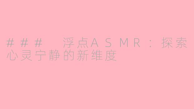 在快节奏的现代生活中,越来越多的人开始寻求心理的放松与宁静。而“浮点ASMR”正是这一需求的一个创新体现。ASMR(自发性知觉经络反应)作为一种通过声音来引发愉悦感的现象,已经吸引了无数爱好者。而“浮点”二字则带来了更深层次的意境,意味着轻盈、飘浮的感觉。