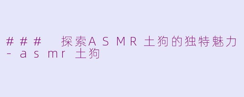 在近年来,ASMR(自发性知觉经络反应)视频逐渐成为网络热潮,其中“土狗”这一主题也引起了不少人的关注。土狗,作为我们身边常见的伴侣动物,凭借其可爱的外形和忠诚的性格,成为了许多ASMR爱好者的新宠。