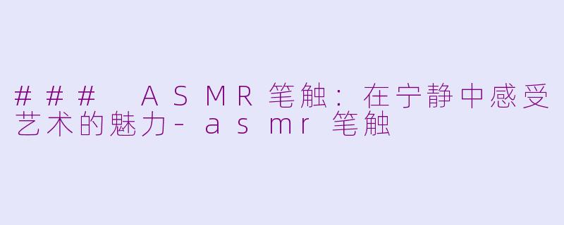在这个快节奏的时代,越来越多的人开始寻求一种能够放松心情的方式,而ASMR(自主感觉经络反应)便成为了许多人的选择。其中,ASMR笔触以其独特的声音与视觉体验,吸引了众多艺术爱好者的关注。