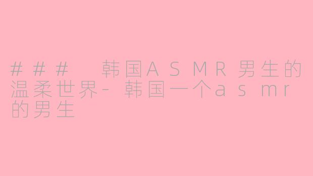 在韩国的网络文化中,ASMR(自发性知觉经络反应)正在逐渐成为一种受欢迎的放松方式。尤其是一些男性ASMR主播,他们以独特的声音和温柔的语气,吸引了大量粉丝。