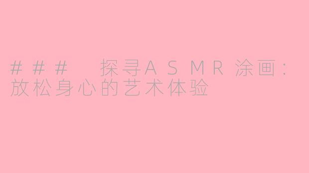 随着现代生活节奏的加快,越来越多人开始寻求放松心灵的方式。其中,ASMR(自主感觉经络反应)涂画成为了一种备受欢迎的选择。这种结合视觉和听觉的艺术形式,带给人们独特的感官享受。
