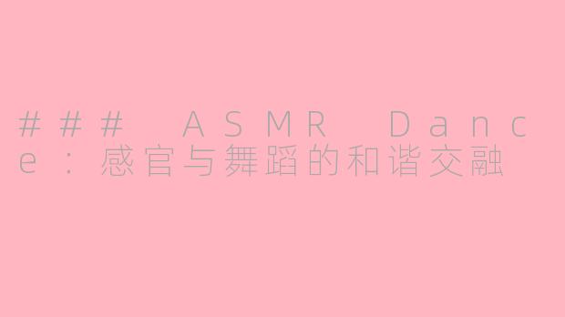 近年来,ASMR(自发性知觉经络反应)的现象在网络上越来越受到关注。而将其与舞蹈相结合,形成的ASMR Dance则成为了一种新兴的艺术表达方式。ASMR Dance通过舞者的轻柔动作与特殊的音效,营造出一种独特的感官体验。
