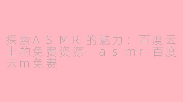 在近年来,ASMR(自发性知觉经络反应)逐渐成为一种热门的放松方式。越来越多的人通过听ASMR音频来缓解压力、改善睡眠。而在百度云平台上,许多爱好者分享了丰富的免费ASMR资源,让更多人能够体验这一独特的声音享受。