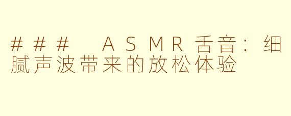 ASMR(自发性知觉经络反应)是一种能够引发静谧和放松的声音体验,其中,舌音作为一种独特的发声方式,受到越来越多人的关注。舌音,通常是指与舌头相关的各种音效,如舔舐声、咀嚼声等。这些声音在ASMR视频中被巧妙地运用,给观众带来耳朵的享受。