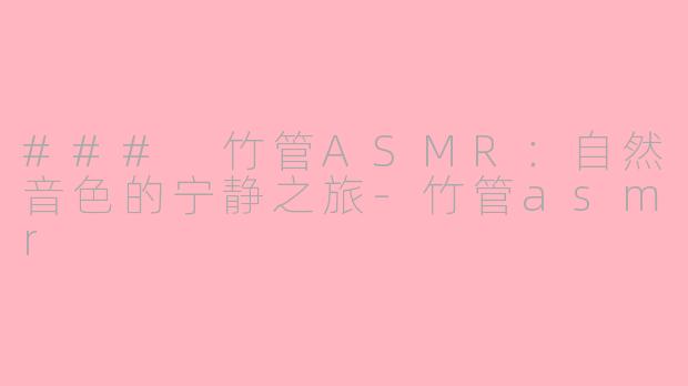 在这个快节奏的现代生活中,越来越多的人开始寻找放松和减压的方法。而ASMR(自发性知觉经络反应)作为一种新兴的听觉体验,正逐渐受到欢迎。其中,竹管ASMR以其独特的自然音色,成为许多人放松身心的首选。