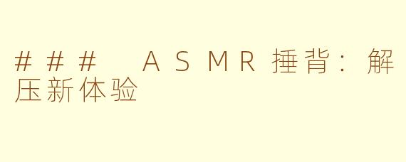 总的来说,ASMR捶背不仅是一种新颖的放松方式,更是一种心灵的慰藉。无论是在疲惫的工作后,还是在忙碌的生活中,试试这一独特的体验,给自己带来一丝宁静吧!