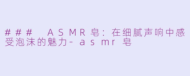 在当今快节奏的生活中,越来越多人寻求放松与减压的方法。ASMR(自主神经感应经络反应)作为一种独特的体验,也是近年来备受关注的放松方式。而ASMR皂的出现,更是将这两者结合,带来了全新的感官享受。