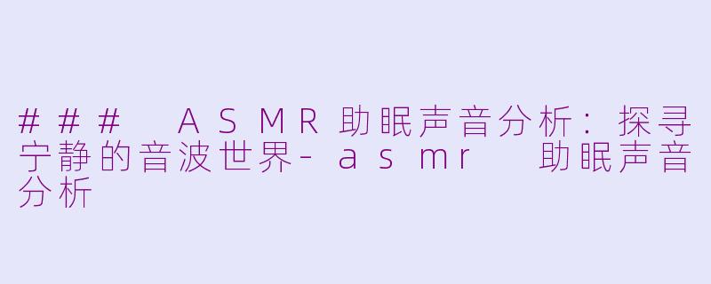 总之,ASMR为现代人解决失眠问题提供了新的思路,通过对特定声音的分析,我们能够更好地理解其背后的助眠机制。无论是通过耳机聆听或是放在背景中,ASMR都在潜移默化中引导我们进入一个更为宁静的梦境世界。