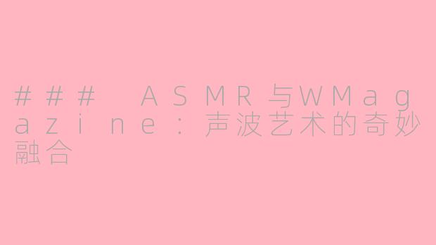 ASMR(自主感觉经络反应)近年来在网络上崭露头角,成为一种流行的放松和减压方式。而WMagazine作为时尚与文化的先锋,不断探索与创新,将ASMR与视觉艺术相结合,赋予其新的生命。