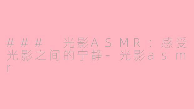 总之,光影ASMR是一种让人沉浸其中的艺术形式,它提醒我们停下脚步,去欣赏生活中的点滴美好,感受光与影的舞动,以及它们带来的心灵宁静。