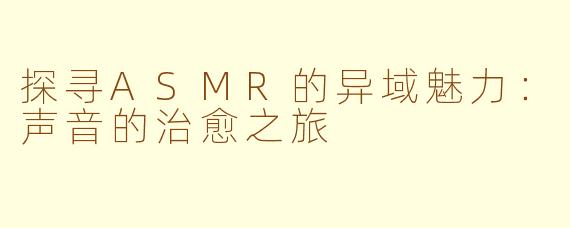 ASMR(自发性知觉经络反应)近年来在全球范围内越来越受欢迎。它通过特定声音和视觉刺激,带给人们一种放松和愉悦的体验。而在这个声音的世界里,各个异域文化的ASMR作品更是为我们带来了耳目一新的感觉。