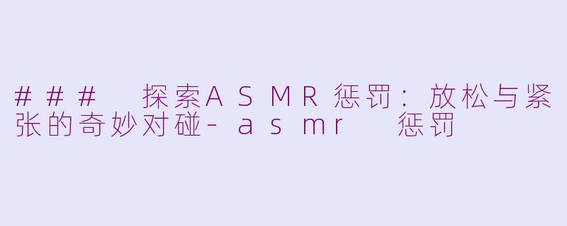 随着ASMR(自发性知觉高潮反应)的受欢迎程度不断攀升,越来越多的人开始关注这一现象背后的不同应用和表达方式。其中,“ASMR惩罚”作为一个新兴的主题,吸引了不少网友的眼球。在这个特定的概念中,ASMR的柔和声音与某种“惩罚”元素相结合,形成了一种独特的体验。