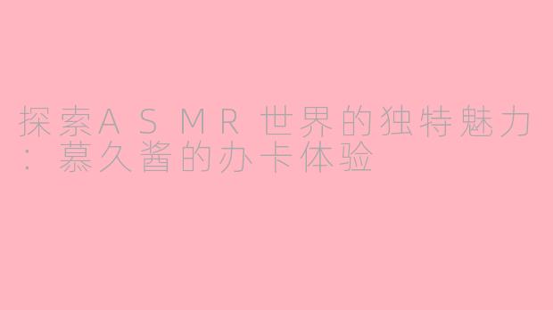 在如今快节奏的生活中,越来越多的人开始关注ASMR(自发性知觉经络反应)这一现象。而慕久酱作为ASMR界的一颗新星,其独特的声音与氛围深受粉丝喜爱。最近,慕久酱推出了与ASMR相关的办卡服务,这无疑为粉丝们带来了全新的体验。