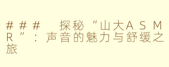 在这个快节奏的生活中,人们渴望寻找一方宁静,而“山大ASMR”就如一缕清风,为我们带来了身心放松的体验。ASMR(自主感官经络反应)是一种通过声音刺激引发愉悦感的现象,而“山大ASMR”则将这一体验与山大的校园文化相结合,提供了独特的视听享受。