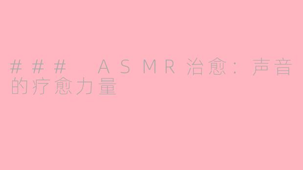 近年来,ASMR(自发性知觉经络反应)逐渐走入人们的视野,成为一种受欢迎的放松和减压方式。ASMR治愈不仅仅是通过声音刺激带来的愉悦感,更是在心理健康领域中展现出的 healing power。