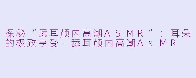 ASMR(自发性知觉经络反应)在近年来获得了越来越多的关注,而“舔耳颅内高潮ASMR”则是其中一种让人欲罢不能的体验。这种特殊的声音刺激通过模拟耳朵周围的轻柔声音,让听者产生强烈的放松感和愉悦感。