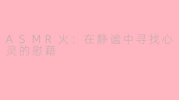 在这个喧嚣的时代,ASMR火代表了人们内心对温柔与平静的渴望。它提醒我们,放慢脚步,倾听那些细小而美好的声音。