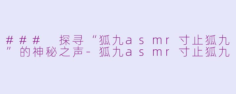 在当今网络文化中,ASMR(自发性知觉经络反应)逐渐成为一种独特的放松方式,而“狐九asmr寸止狐九”则是这一领域中的一颗璀璨明珠。狐九作为一名ASMR创作者,以其独特的声音和精致的内容,吸引了大量粉丝。