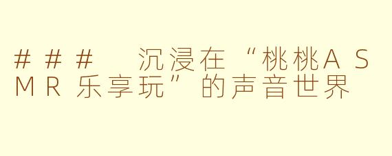 在这个快节奏的生活中,越来越多的人开始寻求一种放松和舒缓的方式。桃桃ASMR乐享玩正是这样一个令人沉醉的声音世界。ASMR(自发性知觉经络反应)通过轻柔的声音和细腻的耳边细语,让听者感受到深度的放松与愉悦。