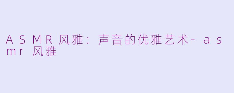 在现代社会中,ASMR(自发性知觉经络反应)逐渐成为一种独特的放松方式,吸引了越来越多的追随者。而“ASMR风雅”则是对这种声音艺术的一种提升与再诠释。与传统的耳语、敲击声不同,风雅的ASMR更注重声音的韵律感和情感表达。例如,清脆的茶具碰撞声、悠扬的古琴独奏,甚至是轻声的诗词吟诵,都能让人感受到一种特殊的宁静与美感。