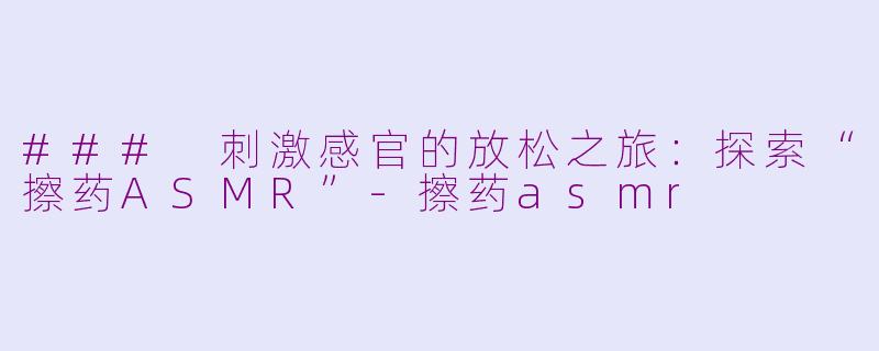 近年来,ASMR(自主感觉经络反应)在全球范围内迅速流行,成为无数人追寻放松与舒缓的良方。而“擦药ASMR”则是这一现象的新分支,以独特的声音和视觉效果,为听众带来意想不到的心灵体验。
