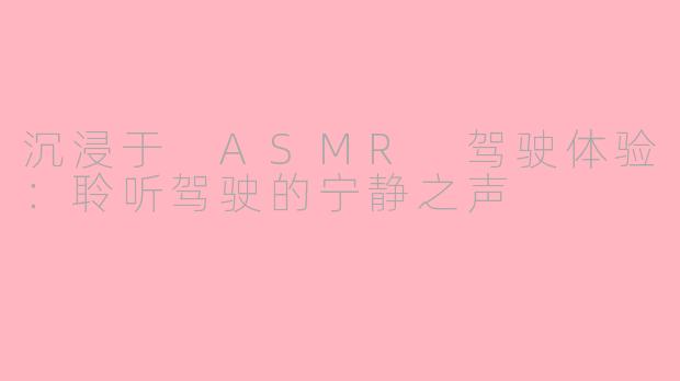 在现代社会中,ASMR(自主感官经络反应)逐渐成为一种新兴的放松方式,而“ASMR 驾驶”则是将这种体验与驾驶相结合的一种独特形式。想象一下,当你坐在驾驶座上,轻柔的引擎声、轮胎与路面摩擦的沙沙声以及偶尔的自然环境声音交织在一起,这种音效既能让人感到宁静,又能激发内心的探索欲望。