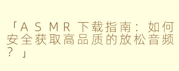 ###3.常见ASMR下载格式 -MP3:通用性强,适合普通听众。 -无损格式(FLAC/WAV):适合追求高保真音质的用户,但文件较大。