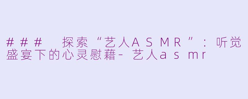 随着ASMR(自主感觉经络反应)在全球范围内的普及,越来越多的艺人也开始涉足这一领域,为粉丝带来别样的听觉享受。艺人ASMR融合了艺术表演与声音艺术,运用细腻的语音、轻柔的音效和自然的环境声音,创造出一种独特的氛围。