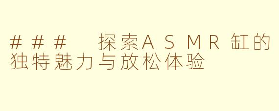 如今,随着声音艺术和视觉设计的发展,ASMR缸的形式愈加多样化,用户体验也不断提升。这种独特的体验吸引了越来越多的人们关注和参与,成为一种新兴的文化现象。无论你是想要减压,还是寻求灵感,ASMR缸都是一个值得尝试的选择。