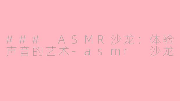 近年来,ASMR(自主感官经络反应)逐渐成为一种独特的文化现象,吸引了无数人沉浸在声音的海洋中。ASMR沙龙作为一个新兴的社交聚会形式,旨在让参与者在轻松愉悦的环境中,体验和分享ASMR声音的魅力。
