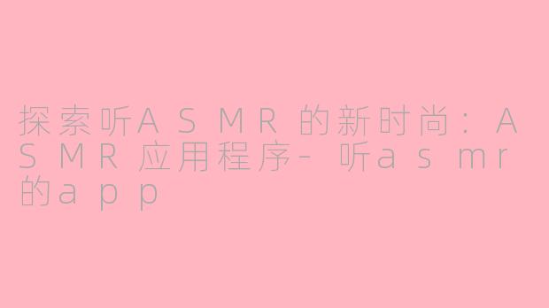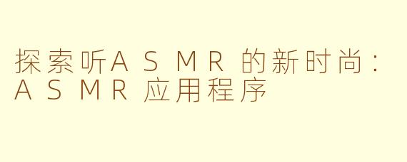 随着ASMR(自发性自发性感觉反应)在近年来变得越来越受欢迎,越来越多的人开始倾听ASMR音频以放松身心。为了迎合这一需求,许多开发人员推出了特定的ASMR应用程序,让用户可以随时随地享受ASMR的神奇效果。