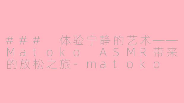 在这个快节奏的现代生活中,越来越多的人开始寻找放松和宁静的方式。Matoko ASMR以其独特的声音艺术,成为了许多人缓解压力、放松身心的首选。ASMR(自发性知觉经络反应)通过轻柔的声音和细腻的触发,能够让人感到深度的放松与愉悦。