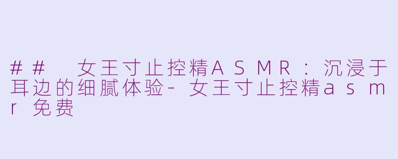 近年来,ASMR(自发性知觉经络反应)逐渐成为许多人放松身心的重要方式。而“女王寸止控精ASMR”更是在这一领域独树一帜,吸引了大量爱好者的关注。这种独特的ASMR体验,结合了女王般的权威感与细腻的声音表演,让听众在耳边享受如同被宠溺般的感觉。
