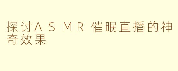 现如今,随着网络直播的盛行,越来越多的人开始关注ASMR催眠直播这一热门话题。ASMR(Autonomous Sensory Meridian Response)被称为自发性知觉触发反应,在听到某些特定声音或刺激时,人们会感到愉悦、放松甚至产生困意。而结合催眠的元素,ASMR催眠直播更是让人耳目一新。