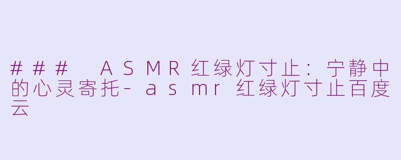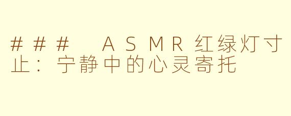 总之,ASMR红绿灯寸止不仅是一种听觉享受,更是一种心灵的慰藉。让我们在喧嚣的城市生活中找到片刻的安宁吧。