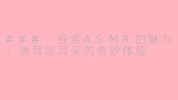ASMR(自发性知觉经络反应)近年来引起了广泛的关注,而“诱耳吸耳朵”作为其中一种独特的ASMR体验,逐渐成为人们放松心情、缓解压力的新方式。这种声音刺激通常涉及轻柔的耳边呢喃、轻轻的耳朵触碰和吸耳的声音,能够在听者的耳边制造出一种亲密而温暖的氛围。