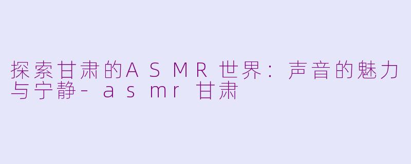 在繁忙而喧嚣的现代生活中,许多人开始寻找放松和减压的方法,而ASMR(自发性知觉经络反应)便成为了其中一个热门选择。甘肃,这片富有自然美景和文化底蕴的土地,正是ASMR爱好者们的天堂。