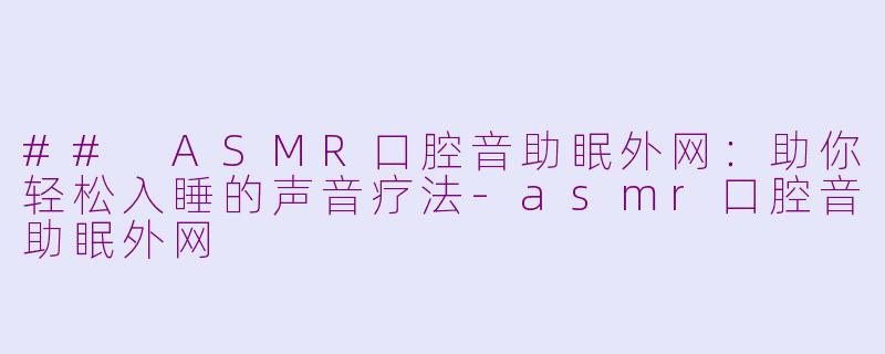 若你也在为失眠而烦恼,不妨尝试这些ASMR口腔音的视频,让声音陪伴你度过宁静的夜晚,享受更优质的睡眠。