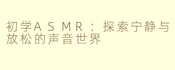 作为一种新兴的放松方式,ASMR(自主性知觉经络反应)越来越受到人们的青睐。对于初学者来说,了解ASMR的基本概念和体验过程是十分重要的。ASMR是一种通过声音、视觉和触觉等刺激产生的愉悦感受,通常伴随着轻微的麻酥感,帮助人们减轻压力、改善睡眠。