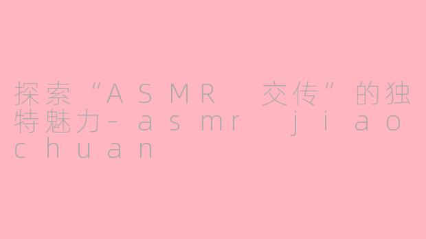 随着ASMR(自发性知觉经络反应)在全球范围内的流行,越来越多的人开始体验这一新兴的放松方式。在其中,“ASMR 交传”作为一种新兴的表达形式,逐渐引起了关注。交传,即交替传译,通常用于语言翻译中,而将其与ASMR相结合,形成了一种特殊的感官体验。