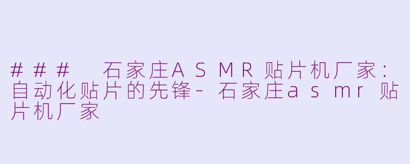 总的来说,石家庄ASMR贴片机厂家凭借其优质的产品和完善的服务,正成为电子制造行业中值得信赖的合作伙伴。