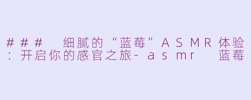 在当今快节奏的生活中,人们越来越渴望寻找放松和宁静的方式,而“ASMR”(自发性知觉经络反应)便成为了一种流行的解压手段。最近,在各大社交平台上,关于“蓝莓”的ASMR视频吸引了无数观众的注意。